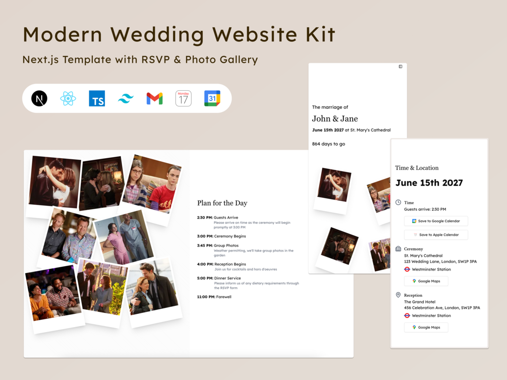 Modern Wedding Website Kit - Next.js Template with RSVP & Photo Gallery